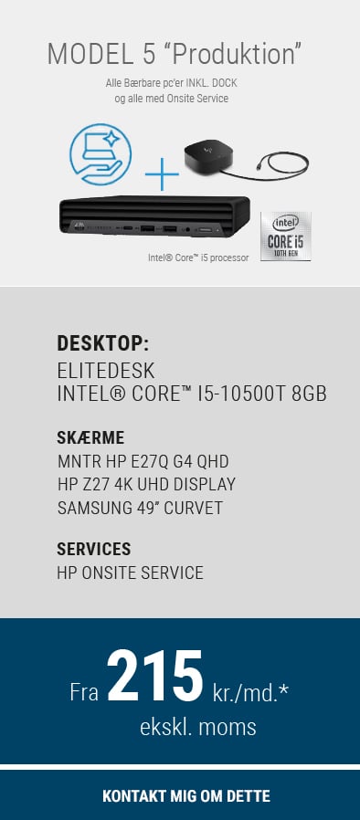 I samarbejde med HP Finans markedsfører vi fem standardløsninger, som vi erfaringsmæssigt ved, passer til de fleste behov. Du kan naturligvis få Scanditek til at skræddersy løsningerne til dine medarbejdere ud fra unikke behov.
