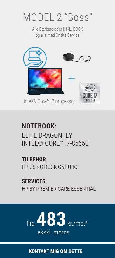 HP Business Boost fra Scanditek er et unikt koncept, der giver dig en PC-arbejdsplads fra HP med deres markeds- ledende sikkerhedsfunktioner OG problemfri Onsite Service. Alt sammen til en fast lav, månedlig ydelse. Leveret med Scanditeks omsorgsfulde klargøring, opsætning, installation og dataflytning fra tidligere enhed. Det betyder, at dine medarbejdere er hurtigt i gang, er produktive og er sikret bedst muligt mod cyberangreb. Vælg mellem fem løsninger, eller få beregnet din egen løsning!