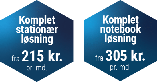 Vi kan naturligvis indrette enhver arbejdsplads efter behov og de givne forhold; skærme med samarbejdsfunktion, buede skærme til medarbejdere med mange bolde i luften, printere, mus og tastatur. Hør mere om mulighederne sammen med vores Business Boost pakker.