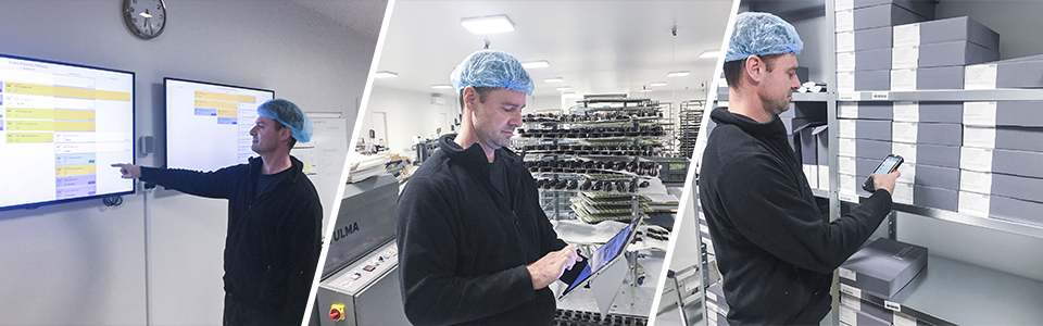 For at synliggøre opgaverne for medarbejderne, er der blevet hængt to skærme op i produktion og pakning, som præsenterer de væsentligste informationer til medarbejderne med digitalt overblik over opgaver og arbejdsprocesser på dagsbasis. Derudover har man koblet tablets, scannere og printere til løsningen, som alle fødes med data fra virksomhedens ERP-system.